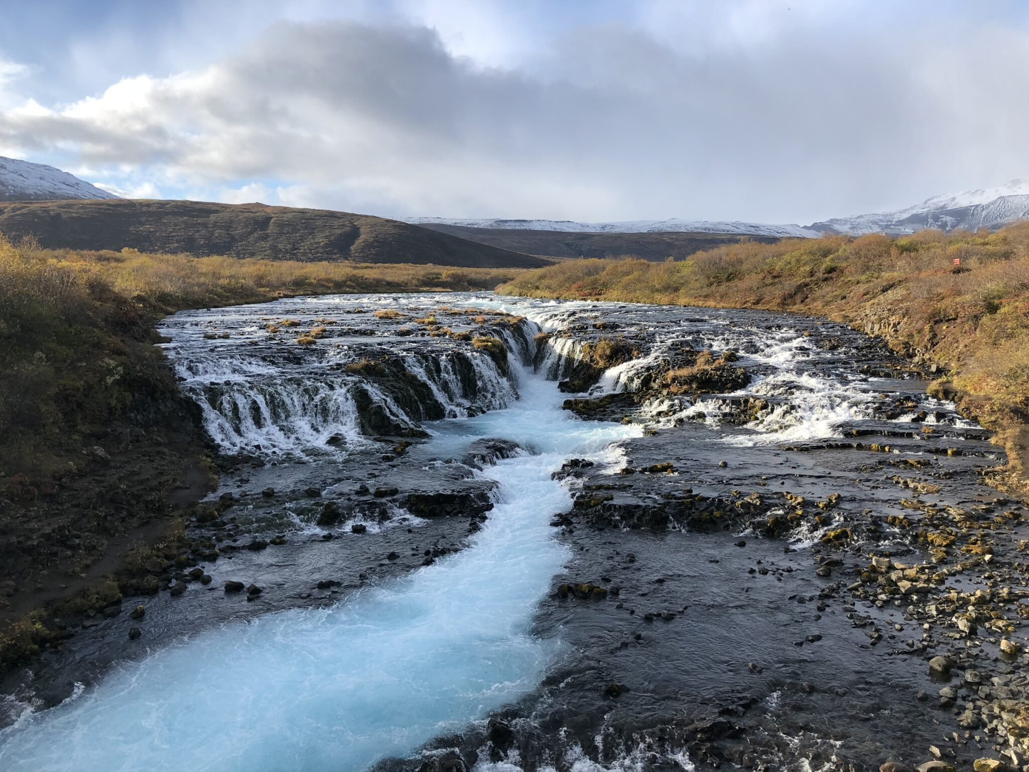 If you put Bruarfoss into your Google Maps, it will lead you to a road with a locked gate. Park the car there and start walking! It’s about a 45 minute walk to the falls. The way there can be slightly confusing, but follow the paved road until you see a handmade sign pointing towards Bruarfoss and hang a left. Eventually, you’ll come to a bridge, which will take you to the falls. You will likely see other people in the area coming from the falls or locals walking around, so I recommend asking them for directions to the falls to ensure that you are on the right path.