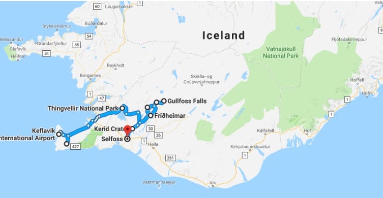 The first day of my 5-day Iceland itinerary will take you from the KEF airport to the Blue Lagoon, around the Golden Circle in a clockwise-direction and ending the day staying in a town called Selfoss.